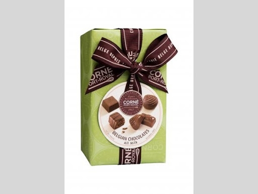 Description Ballotin 17 chocolats au lait et SANS ALCOOL Papier Vert et ruban marron 235 g |