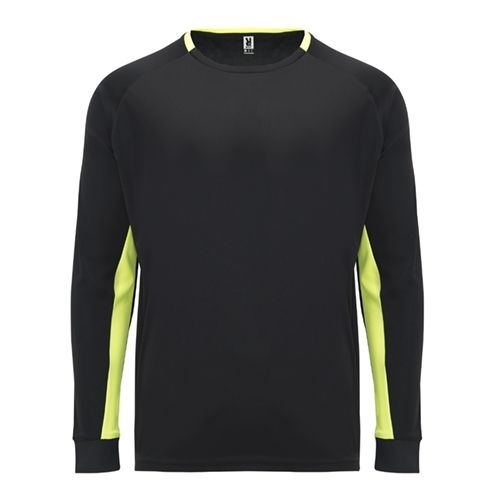 Description T-shirt de gardien de but unisex.1. Manches longues avec coudières matelassées.2. Panneaux contrastés à l´interieur des manches.3. Détail en contraste à l'arrière du col et les poignets.100% polyester, 160 g/m².*Etiquette détachable.*Tissu technique.*Modèle respirant.[52cm/70cm] |