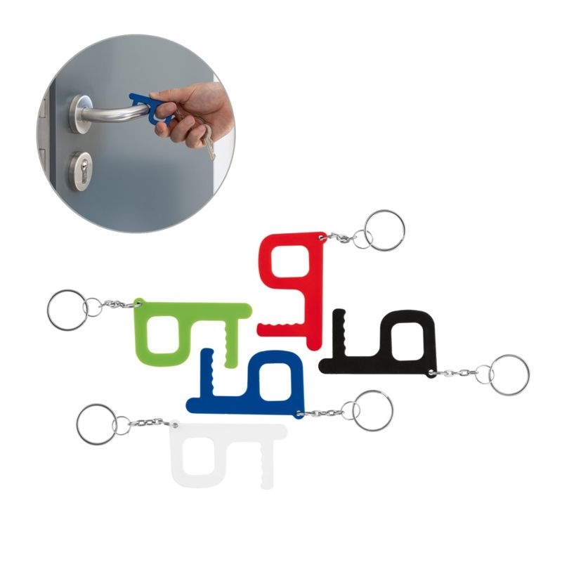 Description Porte-clés ABS avec traitement antibactérien, selon la certification ISO22196. grace à son design, il aide à ouvrir les portes et sa pointe permet l'utilisation de boutons, comme le guichet automatique ou l'ascenseur.38 x 69 x 5 mmABSCertificats : ISO 22196Marquage par défaut : Porte-clés - Devant (Tampographie - 25 x 5). |
