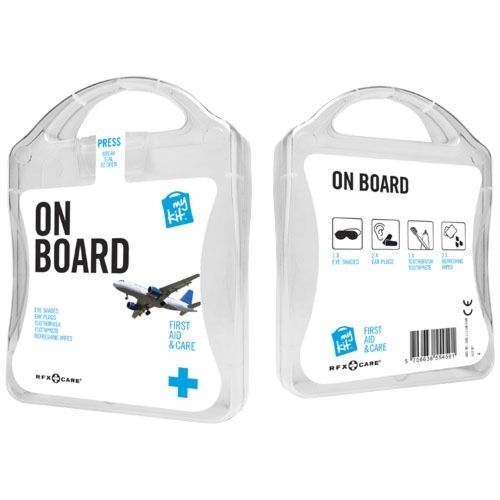 Description Le kit avion vous permet de vous relaxer et vous rafraichir pour arriver en pleine forme à destination. Contient: 1 masque pour les yeux, 2 bouchons d'oreille, 2 lingettes rafraîchissantes, 1 brosse à dents, 1 dentifrice. Tous les contenus à l'intérieur des kits sont conformes à la législation européenne. Le prix comprend l'étiquette personnalisée.PlastiqueSticker numérique - Corps - 90 x 127 mm - couleurs max : full colour. Larg. 30 Long. 100 H. 134 |