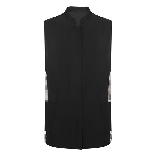 Description Blouse femme sans manches. Fermeture centrale avec boutons-pression cachés. Col mao, coutures latérales et pinces poitrine. Deux poches plaquées devant.100% Polyester, 130g/m².* Etiquette Detachable. |