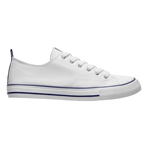 Description Basket classique en toile avec semelle en caoutchouc blanc décorée de lignes colorées. Oeillets de ventilation latéraux, embout en caoutchouc et fermeture à lacets.Informations de Marquage:Sur le coté extérieur (zone du talon):- Transfert numérique |