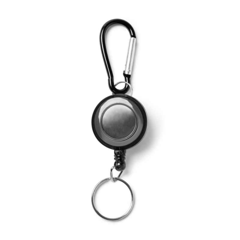 Description Porte-clés avec mousqueton et anneau rétractable. |