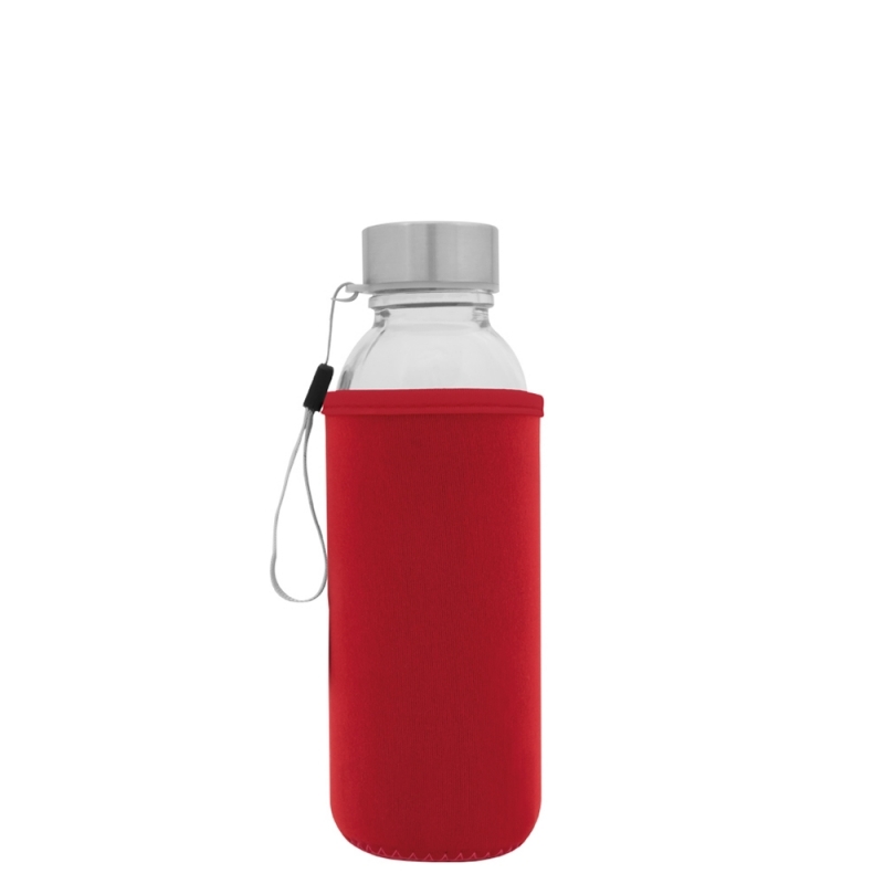 Description Bouteille en verre avec bouchon en acier inoxydable et housse en néoprène. Capacité de 420 ml. |