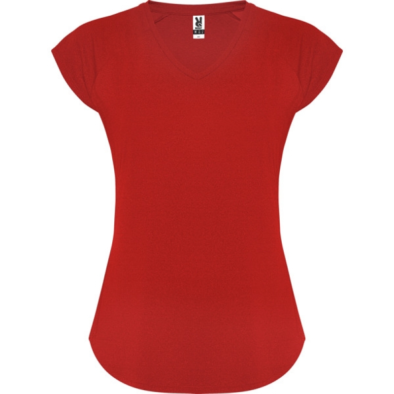 Description T-shirt technique multisport pour femme, manches courtes style raglan. Col V.Tissu polyester touché coton. Coupe ajustée.  |