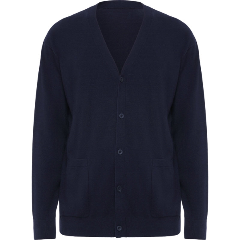 Description Veste col V. Tissu en tricot doux. · Fermeture centrale de cinq boutons au ton. · Deux poches de plaston. · Poignets et taille élastiques en côte 1x1. |
