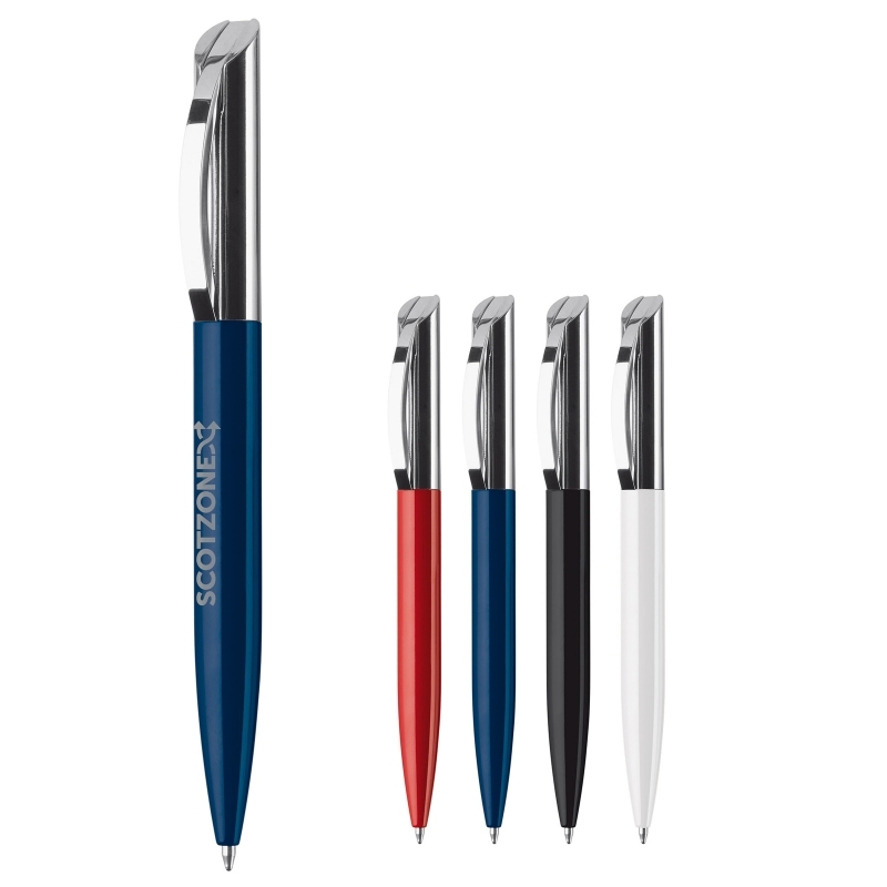 Description Stylo métal design , clip courbé, mécanisme twist. Cartouche metal (encre bleue). |