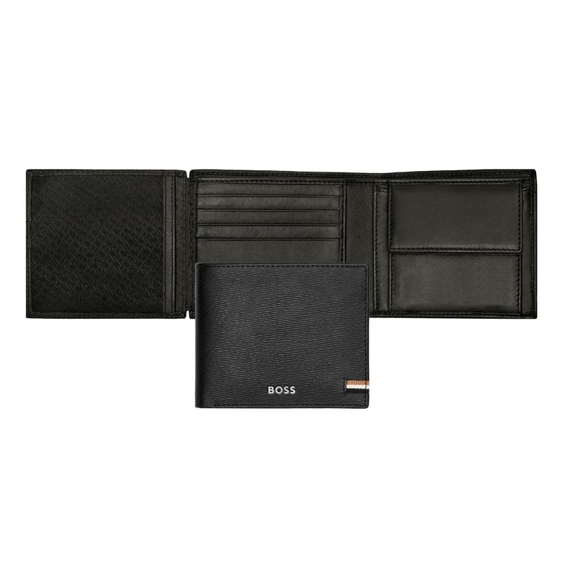 Description Ce portefeuille trifold doté d'une pochette à monnaie est fabriqué en cuir texturé noir de première qualité soigneusement sélectionné. Il est orné d'une luxueuse plaque de signature BOSS chromée et d'une doublure intérieure monogrammée. Cette version emblématique se distingue également par le drapeau tricolore en textile qui orne tous les articles de cette série Le portefeuille comprend : 2 compartiments à monnaie 8 emplacements pour cartes 3 compartiments latéraux 1 fente pour la monnaie Conformément à l'ADN de la marque BOSS, il est simple, fonctionnel, élégant et minimal. |