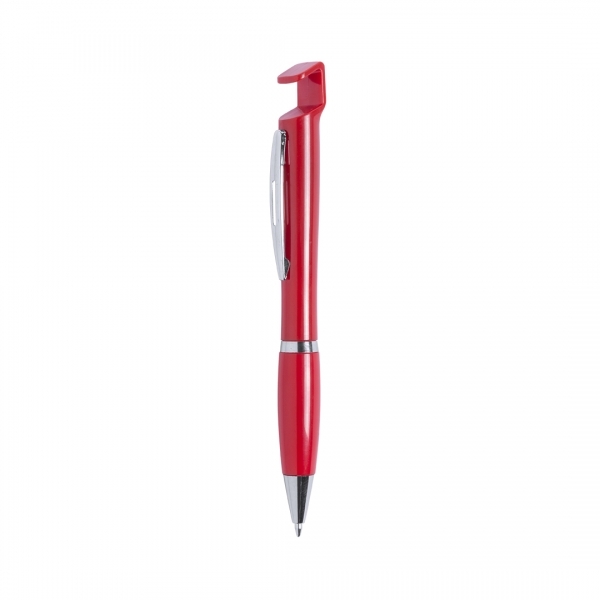 Description Stylo à bille avec fonction support de téléphone. Mécanisme à poussoir et design en deux tons avec des attributs couleur argent et corps dans des couleurs unies et amusantes. Clip original assorti en métal ajouré et prise en main confortable. Encre bleue.  |