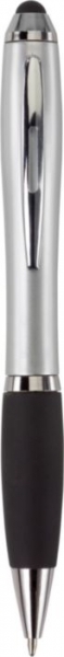 Description Stylo bille en plastique avec embase en gomme et embout pour écran tactile, mine Noire. |
