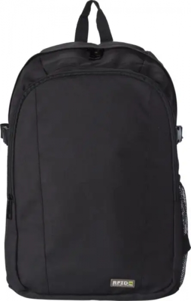 Description Sac à dos porte-ordinateur de 14'' avec protection RFID en polyester 600D, poche frontale zippée et poche filet latérale. |