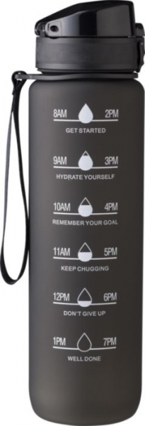 Description Gourde en rPET toucher gomme mat d'une contenance de 1 L avec dragonne et bouchon sport. |