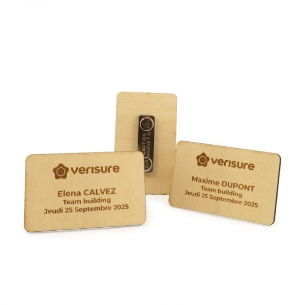 << Revenir au catalogue Liberty Gift > Objets publicitaires divers Badge bois magnétique