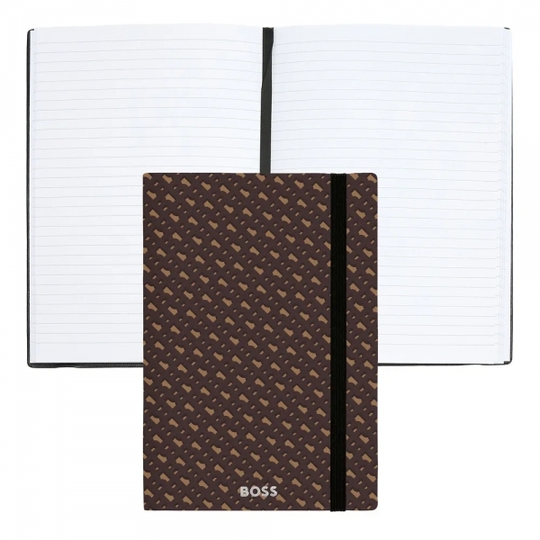 Description Célébrant le monogramme emblématique BOSS dans une palette neutre et discrète, ce carnet A5 gris est orné d’un luxueux logo en feuille d’argent au fini mat. Issu de la série Elemental, il comprend 192 pages lignées en papier 80 g/m², une fermeture élastique verticale ainsi qu’un marque-page pratique, alliant harmonieusement style et fonctionnalité. |