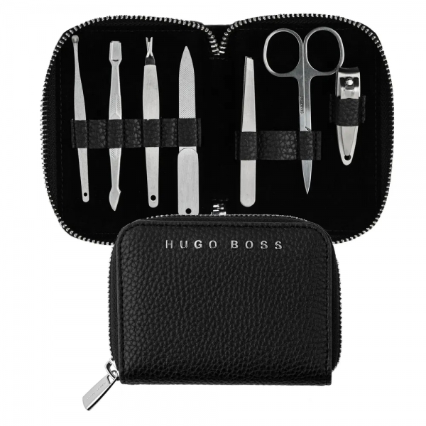 Description La trousse manucure " Storyline" est réalisée dans une matière grainée moderne et signée d'une plaque HUGO BOSS en finition chrome. Elle renferme un set d'outils de soin en acier brossé pour chacun de vos besoins : lime à ongles, ciseaux, pince à épiler, coupe-ongles, nettoyant oreilles, repousse cuticules et fourchette de peaux. Son format compact est très pratique, idéal pour voyager. |