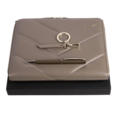 Parure hugo boss taupe (stylo bille, conferencier a5 & porte-clefs)