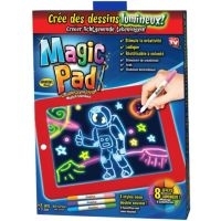 Description - La tablette MAGIC PAD magique est le parfait moyen pour occuper votre enfant. Ludique, pratique et réutilisable à volonté, ce bloc à dessin lumineux permet de développer la créativité des plus jeunes. Fourni avec un kit complet, il deviendra bien vite le jouet préféré de votre enfant. - Un kit complet...La tablette MAGIC PAD magique est un jouet éducatif qui séduit les enfants dès l'âge de 3 ans. Prenant la forme d'un bloc à dessin, il met en lumière les oeuvres des plus jeunes. Fourni avec 3 stylos néon à double couleur et un stylo effaceur, il permet de réaliser une multitude de dessins. - - Cette tablette magique est également vendue avec des cartes noires à insérer dans l'appareil et sur lesquelles réaliser les dessins. Le kit intègre aussi un guide et 30 cartes pochoir qui promettent des heures de jeux et de divertissement. Cet appareil éducatif permet aux plus jeunes d'apprendre l'orthographe, les mathématiques ou encore la lecture en s'amusant. - - - ... pour développer sa créativité.La tablette MAGIC PAD magique est un jeu ludique qui stimule la créativité. Fonctionnant avec des piles (non incluses), elle permet de faire briller les dessins des enfants. Utilisable à l'infini, elle propose 8 effets de lumière différents et colorés. Lorsque le dessin est terminé, il suffit de l'effacer pour réaliser une nouvelle oeuvre. - - Véritable outil dédié au développement de la créativité des enfants, cet appareil est également pratique. Avec ses dimensions compactes et son poids ne dépassant pas les 222 gr, il est en effet facile à emporter. C'est le jouet parfait pour occuper les plus jeunes dans les transports. - - |