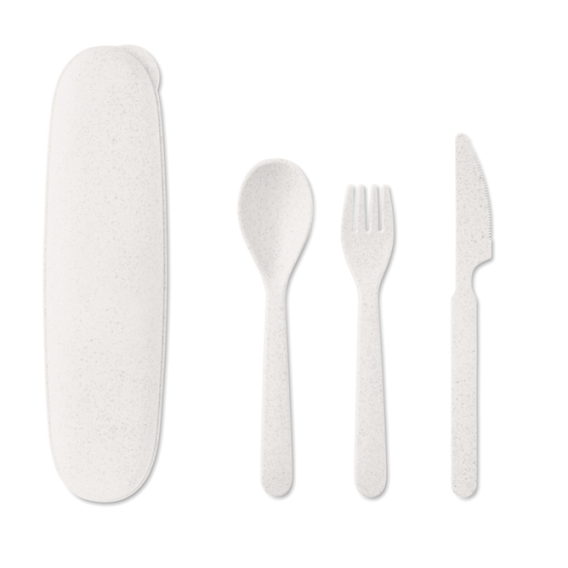 Description Nom du produit :SIYA, Couverts en 50% paille de blé et 50% en PP. Comprend une fourchette, une cuillère, un couteau et un étui., Matiere :MIXED, Dimensions : 22X6X2CM, Page du catalogue : 76 |