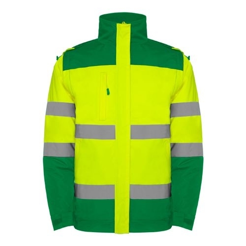 Description Parka haute visibilité combinée en deux couleurs.1.- Bandes réfléchissantes sur le corps et les manches.2.- Capuche avec liseré fluo et ajustable avec embouts.3.- Poche en torse avec fermeture éclair.4.- Deux poches frontales légèrement inclinées d'accès facil.5.- Bas avec élastique.6.- Poignets ajustables par élastique et velcro.7.- Plaquette centrale avec velcro et fermeture éclair fluo avec curseur.8.- Poches intérieures sur le torse et fermeture intérieure de facil accès pour le marquage.9.-Manches amovibles.Extérieur: 100% waterproof polyester.Doublure: 100% polyester.Ouate: 100% polyester.400 g/m². *Certification CE selon les normes: EN ISO 13688:2013 Y EN ISO 20471:2013/A1:2016.*Classe II.*Haute visibilité.*Modèle résistant à l'eau.*Modèle coupe-vent.[66cm/80cm] |
