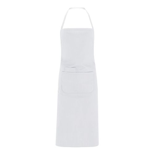 Description Tablier long.1/ bretelle ton sur ton au cou.2. Deux poches frontales, une intérieure et une grande superposée.3. cordons latéraux pour attacher.90% polyester / 10% coton, 150 g/m².*Modèle pour l'alimentation.*Etiquette détachable.[65cm/90cm] |