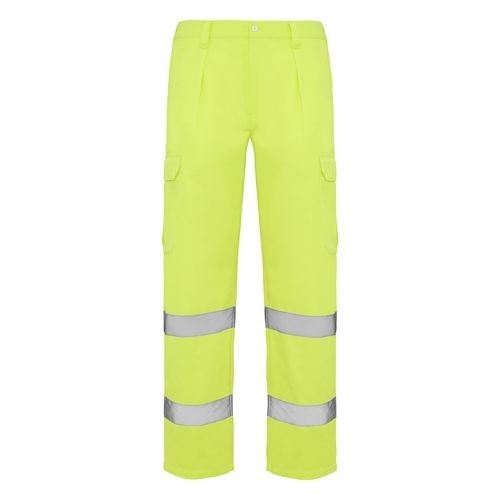 Description Pantalon haute visibilité jaune fluorescent.1.- Ceinture ajustable avec élastique dans le dos.2.- Deux poches avant.3.- Poche fonctionnelle avec rabat et fermeture velcro.4.- Deux poches latérales à soufflet et rabat avec velcro.5.- Deux bandes réfléchissantes horizontales.80% polyester / 20% coton sergé 235 g/m².*Certification CE selon la loi: EN ISO 13688:2013 ET EN ISO 20471:2013/A1:2016*Classe II.*Haute visibilité.[50cm/110cm] |