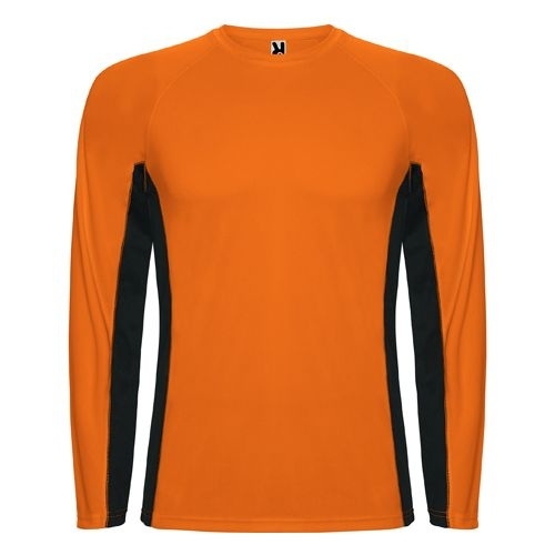 Description T shirt combiné avec deux tissus en polyester. Manches longues style raglan. Tissu principal bird's eye et panneaux latéraux et intérieur des manches en tissu micro perforé. col rond avec bande de propreté renforcée. T shirt confortable et adaptable au corps.Tissu principal: 100% polyester bird's eye. Panneaux: 100% polyester micro perforé. 140 g/m².*Etiquette détachable.*Tissu technique.*Modèle respirant.[58cm/74cm] |