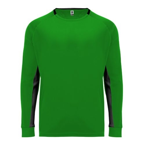 Description T-shirt de gardien de but unisex.1. Manches longues avec coudières matelassées.2. Panneaux contrastés à l´interieur des manches.3. Détail en contraste à l'arrière du col et les poignets.100% polyester, 160 g/m².*Etiquette détachable.*Tissu technique.*Modèle respirant.[64cm/76cm] |