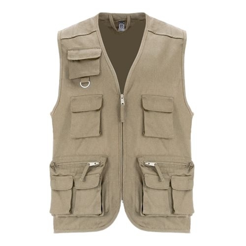 Description Gilet de travail multi-poches:1. Zip central avec tireur.2. Col V.3. Trois poches sur le torse avec rabat et fermeture en velcro.4. Deux poches latérales avec zip et tireur, avec deux poches superposé avec rabat et fermeture velcro.5. Deux poches arrière avec rabat et fermeture velcro.6. Cou, emmanchure et ourlet avec passepoil. 65% polyester / 35% coton, 200 g/m² .* Etiquette détachable.[70cm/78cm] |
