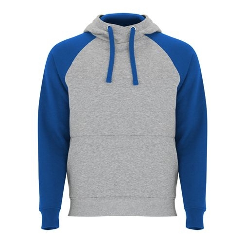 Sweat-shirt bi couleur unisexe. Capuche avec col croisé et oeillets métallique, intérieur et cordons contrastés. Manches raglan contrastées. Poche kangourou. Poignets et bas en cote avec élasthanne 1x1.50% coton / 50% polyester, maille molleton grattée, 280 g/m².Couleur Gris chiné: 55% coton / 40% polyester / 5%viscose.*Etiquette détachable.