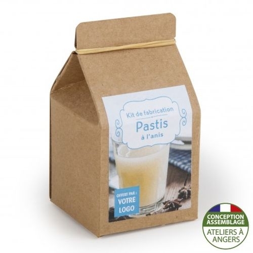 Description Le pastis est le symbole de la convivialité et du soleil. Offrez à vos clients et partenaires un petit kit pour fabriquer son pastis...à consommer avec modération bien entendu !Composition du coffret :Boite format 60 x 60 x 110 mmSachet-Filtre en papierMélange d'épices 20g pour Pastis à faire macérer (par ordre décroissant) : Armoise bio, Menthe poivrée bio, Anis vert bio, Anis étoilé brisures bio, Fenouil graines bio, Bton de réglisse en copeaux. Personnalisation : Ajout d'un adhésif imprimé en quadrichromie à votre communication collé sur la boîte, jusqu à 500 exemplaires. A partir de 500 exemplaires, possibilité d'impression en quadrichromie, nous contacter.Delai de livraison : 5 semaines.Délai de marquage option : 4 semaines.Infos de marquage : Impression numérique.L'abus d'alcool est dangereux pour la santé, à consommer avec modération. Larg. 10 H. 10 |