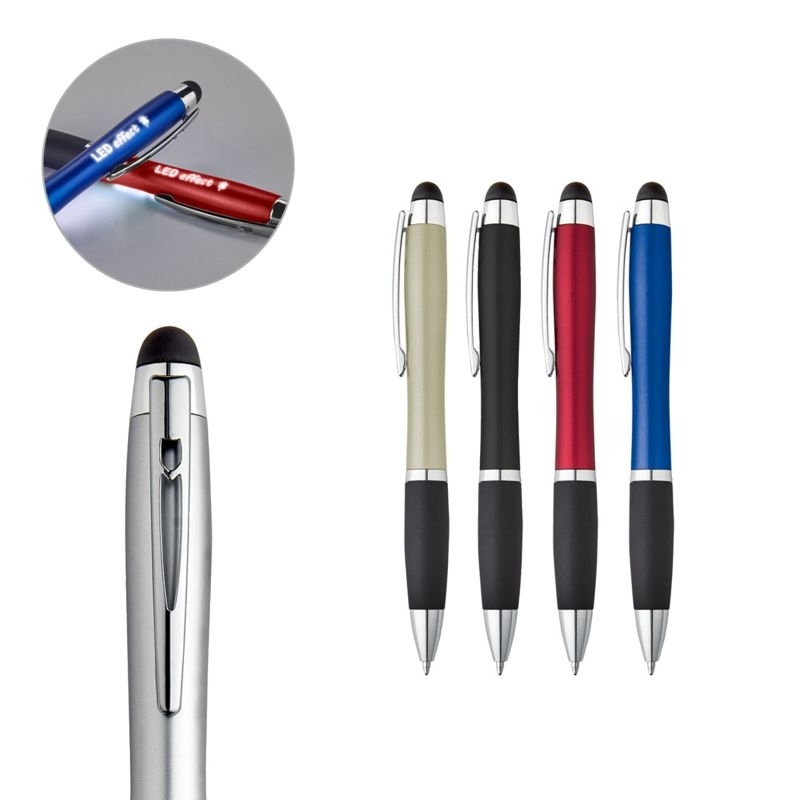 Description Stylo à bille avec mécanisme twist et clip métallique. Stylo à bille avec antidérapant et pointe tactile. Possibilité de personnalisation avec logo rétroéclairé, effet LED en appuyant sur la pointe tactile. Comprend trois pilles AG3.ø11 x 135 mmPropriétés : Encre bleu, LEDPlastiqueCertificats : MSDSBatteries : 3 piles AG3 inclusesMarquage par défaut : Stylo - Corps (Gravure Laser - 30 x 6). Diam. 11 |