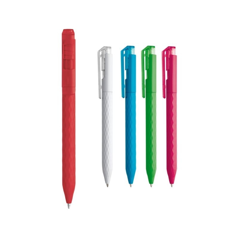 Description Stylo à bille en ABS et AS avec corps à relief en forme de losange.ø11 x 139 mmPropriétés : Encre bleuABS et ASCertificats : MSDSMarquage par défaut : Stylo - Clip latéral (Tampographie - 30 x 5). Diam. 11 |