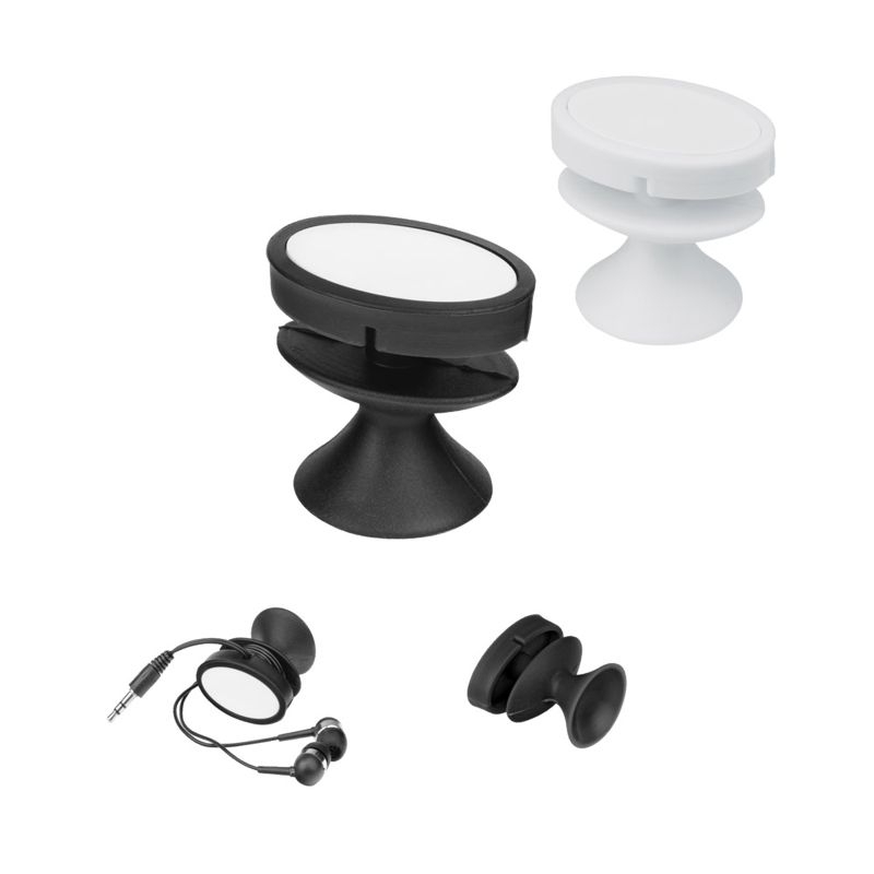Description Support pour téléphone portable en silicone avec cble organizer.39 x 37 x 25 mmPlastiqueEmballage : Sachet - Emballage après impression : Sans sachet individuelMarquage par défaut : Support téléphone - Devant (Doming - 33 x 19). |