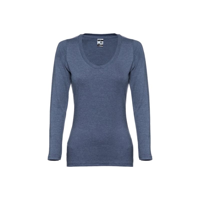 T-shirt ceinturé à  manches longues pour femme en maille jersey 100% coton (150 g/m²) avec fil de coton cardé (couleurs : 194, 195: 60% coton/40% polyester, couleur 183: 90% coton/10% viscose). Coupe moderne avec col renforcé en jersey. Pièce coupée et cousue avec double couture sur les manches et le bas.Tailles: S, M, L, XL, XXLEntretien : Repassage max. 110º, Lavage en machine, Température max. 30º, Ne pas nettoyer à  sec, Ne pas utiliser sèche-linge, Ne pas utiliser d'eau-de-javel ni produit de blanchiment100% cotonCertificats : REACH, OEKO-TEXEmballage : Polybag 5 un - Marquage par défaut : T-shirt Manches longues - Poitrine (Sérigraphie Textile - 240 x 200).