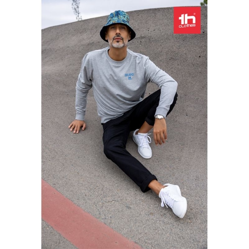Description Sweat-shirt unisexe en éponge italienne cardée, 50% coton et 50% polyester (240 g/m²). Rib sur le col, les poignets et la taille et bande de renfort à l'intérieur du col.Tailles: S, M, L, XL, XXL, 3XLCoton et polyester. |