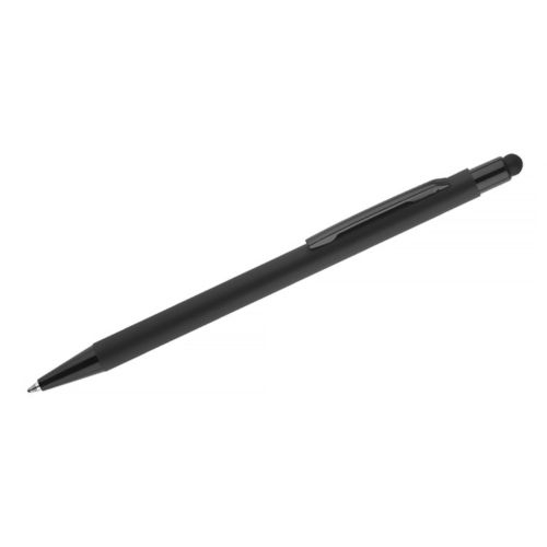 Description Stylo mince, classique PRIM fait en aluminium recouvert de caoutchouc, doux au toucher. En haut, la pointe pour les écrans tactiles en couleur assortie au corps du stylo. Les finition en noir. Le stylo à bille automatique. La mine de type X20 en bleu. |