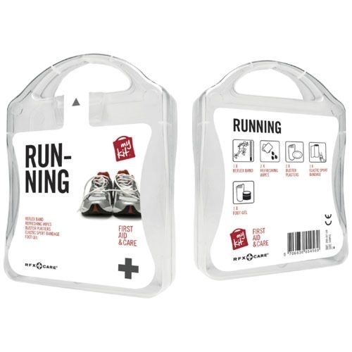 Description Le kit running vous permet de vous rafraichir après une longue course, d'ètre visible avec la bande réfléchissante et de parer aux petites blessures. Contient:1 bande réfléchissante,2 lingettes rafraichissantes, 2 pansements, 1 bandage élastique pour le sport, 1 gel pour les pieds. Tous les contenus à l'intérieur des kits sont conformes à la législation européenne. Le prix comprend l'étiquette personnalisée.PlastiqueSticker numérique - Corps - 90 x 127 mm - couleurs max : full colour. H. 134 Long. 100 Larg. 30 |