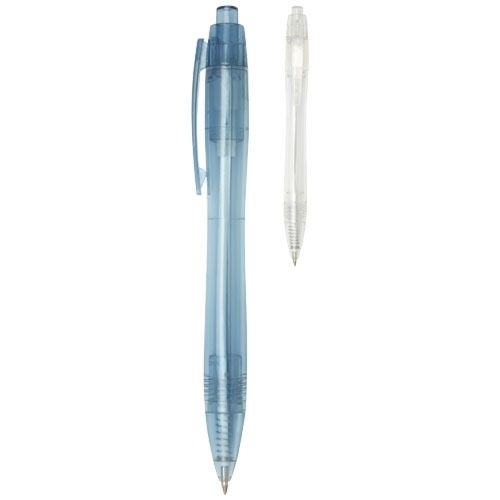 Description Stylo bille rétractable au corps transparent. Le corps est fait de bouteilles d'eau recyclées, ce qui contribue à réduire la quantité de déchets plastiques.Plastique recycléTampographie - Corps - 35 x 5 mm - couleurs max : 4. Diam. 12 Long. 140 |