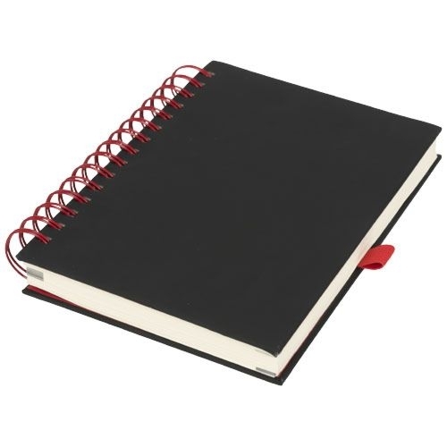 Description Un nouvel ajout à notre populaire gamme de carnets de notes. Ce nouveau carnet de notes polyvalent est doté d'une couverture en PU noir lisse, d'une grosse spirale de couleur vive et d'une boucle de stylo assortie. Avec 160 feuilles de papier ligné crème (70g/m²).Plastique PU, MétalSérigraphie - Devant - 110 x 190 mm - couleurs max : 1. Larg. 158 H. 31 Long. 210 |
