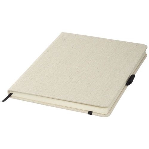 Description Carnet A5 en toile avec fermeture et ruban élastiques colorés. Comprend une boucle de stylo élastique et 80 feuilles (70g / m2) de papier ligné.CotonSérigraphie - Devant - 100 x 190 mm - couleurs max : 1. H. 10 Larg. 140 Long. 210 |