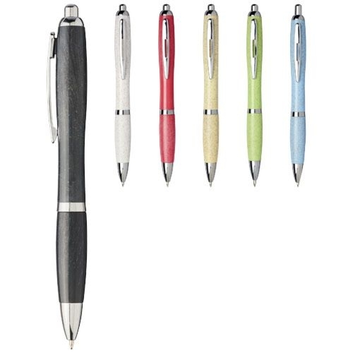 Description Stylo bille rétractable avec corps en paille de blé et finitions chromées surprenantes. La paille de blé est ce qui reste de la tige après la récolte des grains de blé, ce qui réduit la quantité de plastique utilisée.Plastique ABSTampographie - Sur toute la longueur du corps - 60 x 6 mm - couleurs max : 4. Diam. 12.9 Long. 132 |