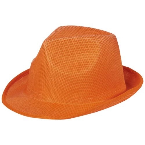 Description Chapeau en polyester Trillby avec une circonférence de 58 cm. Taille unique. Les chapeaux peuvent ètre personnalisés sur le ruban en polypropylène 100 g/m².Tissé 100% PolyesterSérigraphie - ruban - 440 x 20 mm - couleurs max : 3. |
