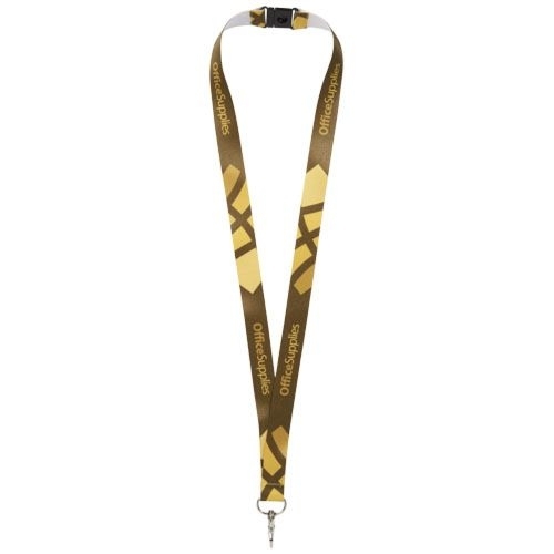 Description Tour de cou avec marquage en sublimation. Il comprend le marquage sur toute la surface, le dos du tour de cou étant blanc. Fourni avec mousqueton métal et boucle de sécurité. Il permet de fixer un badge ou des clés. Disponible en 4 largeurs : 10, 15, 20 et 25 mm.PolyesterSublimation - all over, front - 25 x 900 mm - couleurs max : full colour. Larg. 10 Long. 930 |
