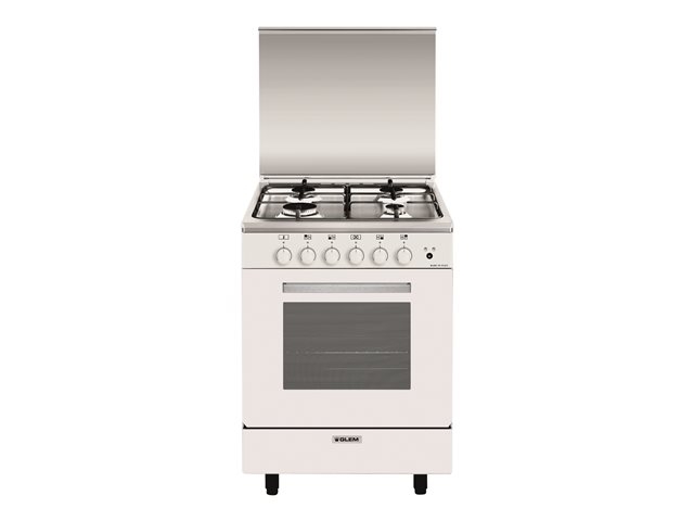 Description Cuisinière Mixte Cuisinière Cuisinière 60 x 60 cm blanche - Alpha - Four multifonctions (6) électrique - Nettoyage |