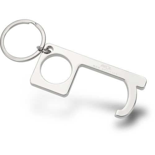 Description Clé en zamac servant de crochet pour ouvrir les portes, et pouvant appuyer sur les boutons d'ascenseur, de distributeurDimensions: 73,2x31mmEpaisseur: 3 à 3,5mmAttache anneau plat + anneau de liaison finition nickel brillant inclusGravure logo en option |