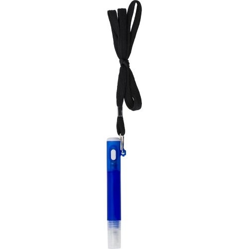 Description Lanyard muni d'un spray hydroalcoolique 70% d'alcool et d'une torche.Matières : ABS/PP.Batteries : 3 Cell-LR41.Sea-Safe Transport of Goods ; MSDS ; Battery 2006/66/EC ; EMC ; D.o.C EMC/CE.Marquages : Tampographie : Sur le côté. H. 108 |