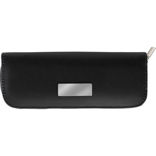 Description Parure de stylo bille et roller en PU et métal dans un écrin zippé en PU, mines noires.Matières : Métal/PU.EN71-3 ; Safety Data Sheet (SDS) ; BSCI ; Cadmium ; PAHs ; Phthalates ; AZO Dyes/Amines.Marquages : Laser : Etui ; Laser : A côté du clip (droitier) ; Laser : A côté du clip (gaucher) ; Tampographie : Etui. H. 25 Long. 165 Larg. 65 |