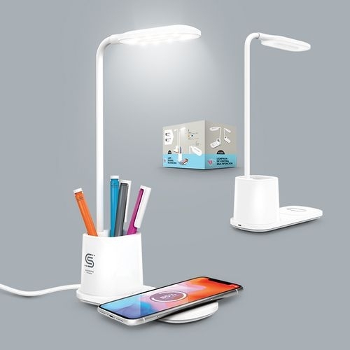 Description Organisez votre bureau avec ce combiné multifonctions pot à crayons, chargeur par induction rapide (7.5 ou 10 W si adaptateur QC3.0) et lampe de bureau 10 LEDs avec 3 réglages d'éclairage. Fonctionne sur USB avec cable fourni. Livrée en boîte individuelle illustrée. Marquage 1 seule couleur.ABS |