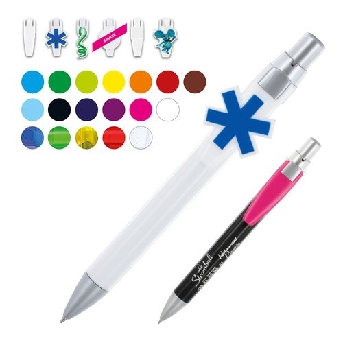 Description Stylo bille noire, clip standard, corps et clip plastique, attributs argent. Marier les couleurs à la demande à partir de 100 pièces. Clip création (à partir de 5000 pièces, maquette et moule sur devis). Marquage sur le corps ou sur le clip. Fabrication française.ABS |