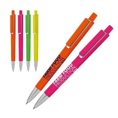 Description Fluo is the new black : un stylo aux couleurs garanties anti grise-mine ! Corps et clip plastique. Ecriture noire, pointe de 1,0 mm. Coloris magenta, orange, jaune, vert, bleu, violet. Marquage 1 couleur sur le corps, uniquement en argent.ABS Diam. 11 |